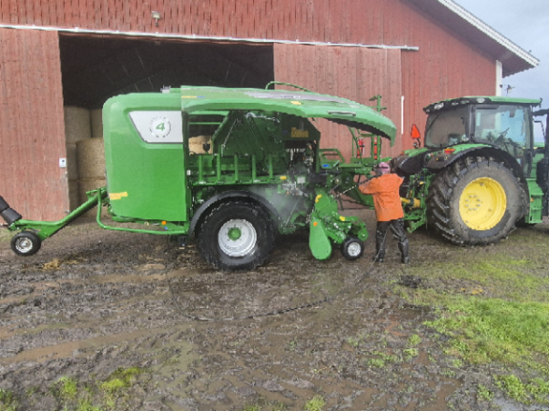 På bilden får en av pressarna lite kärlek av Erika innan den får lite underhåll och ställs in för vintern.